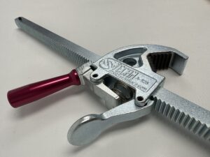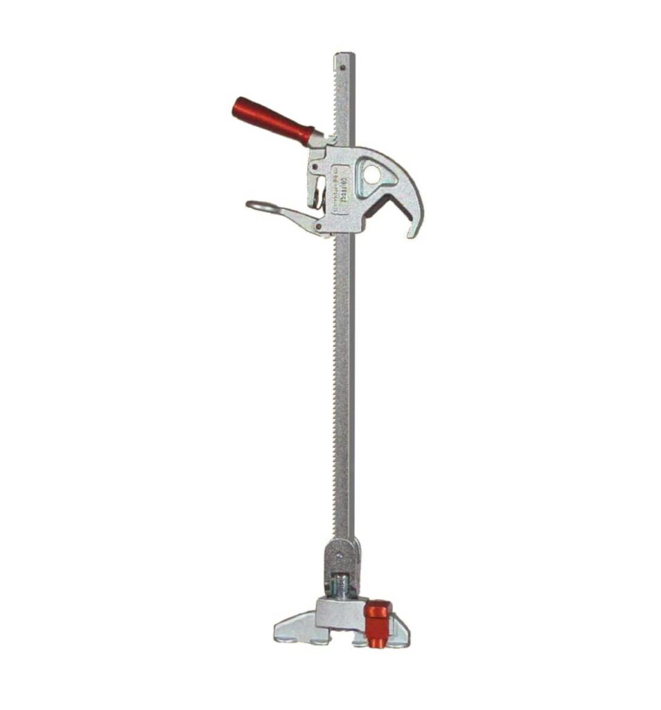 - Este sistema cuenta con una horquilla equipada con un trinquete y un gatillo de fijación, que se desliza a lo largo de una cremallera unida a una base articulada.