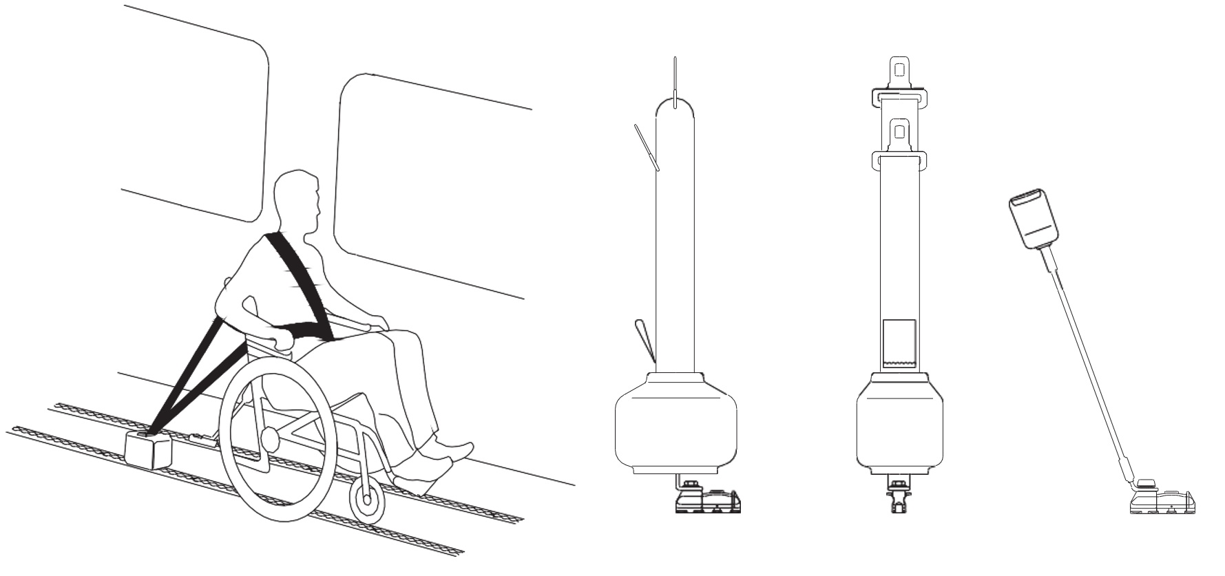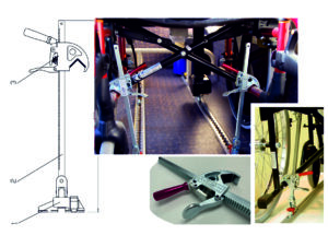 - Sistema de fijación combinada C-601 de cuatro puntos, diseñado para asegurar simultáneamente la silla de ruedas y al pasajero.