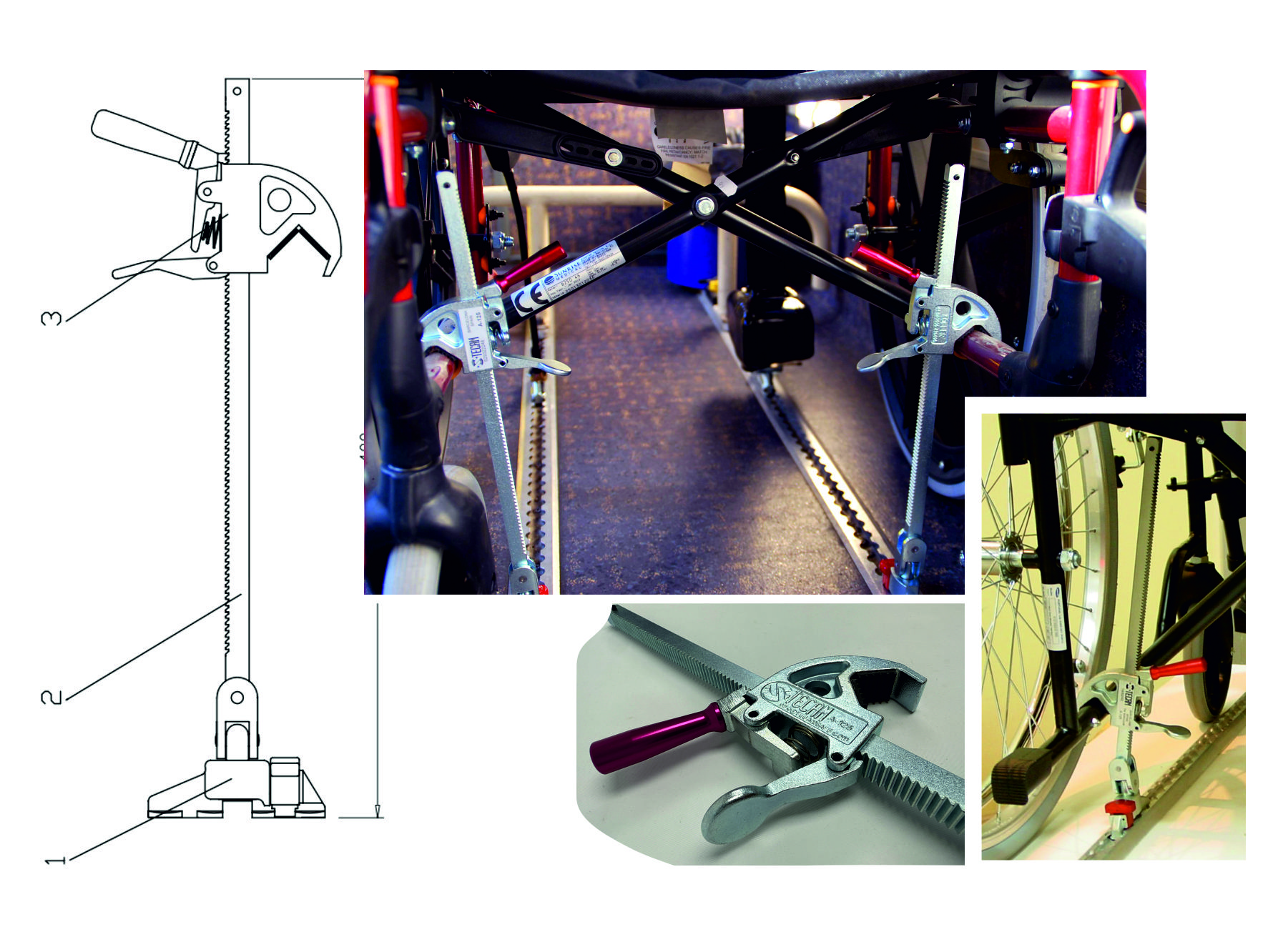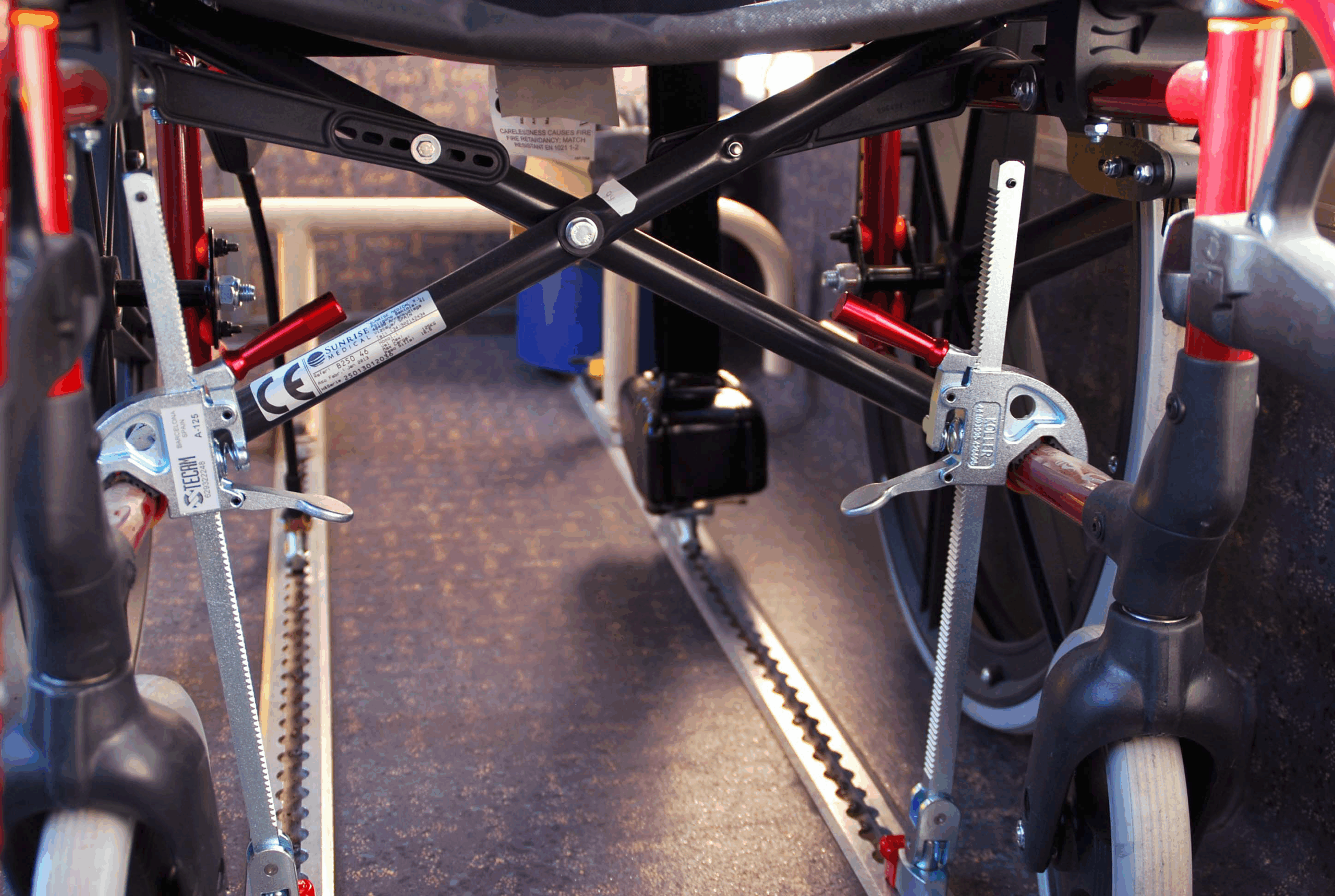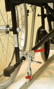 - Dos fijaciones estáticas delanteras conectadas a la silla de ruedas.